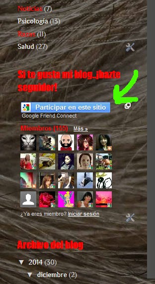 - Ser seguidor del blog, para ello mira en el panel izquierdo del blog y haz click en el botón PARTICIPAR EN ESTE SITIO: