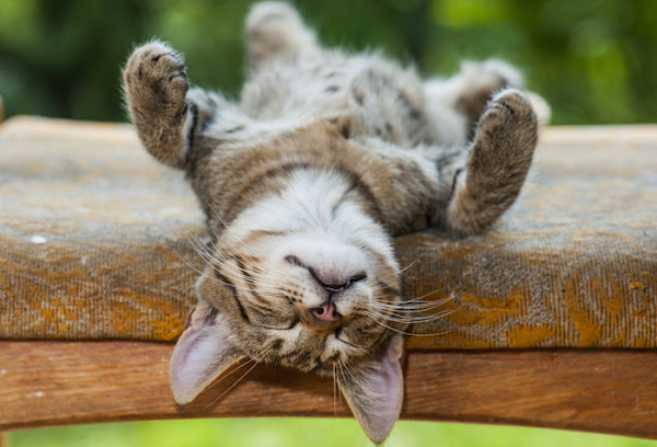 Duermen casi todo el día: Los gatos duermen en promedio 16 horas al día. Al ser netamente carnivoros, toda su energía se concentra en la asimilación de la comida. Así mismo necesitan sólo momentos de energía para cazar su presa (gatos salvajes); entonces por antepasados, génetica y necesidad los gatos en general son muy muy dormilones :)