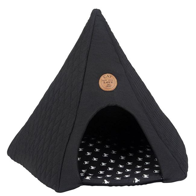 Fuente: Maisons du MondeEn blanco o en gris oscuro, estos tipis despiertan ternura y desde luego la comodidad de nuestro gato será total. Pero hay más aún que decir sobre estos accesorios. También se han creado como un valor añadido para la decoración de la casa. Y en concreto para hacer especiales los lugares donde suelen acampar. Yo me los imagino en una zona de estar, junto a un rincón de lectura, o como su nido entrañable para nuestro dormitorio.