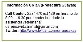 En la provincia del Guayas, la Prefectura cuenta con el área de “Unidad de Rescate y Recuperación Animal” (URRA), quienes brindan atención gratuita a los animales abandonados o en condiciones de riesgo con la finalidad de rescatarlos y buscarles hogares adoptivos.
