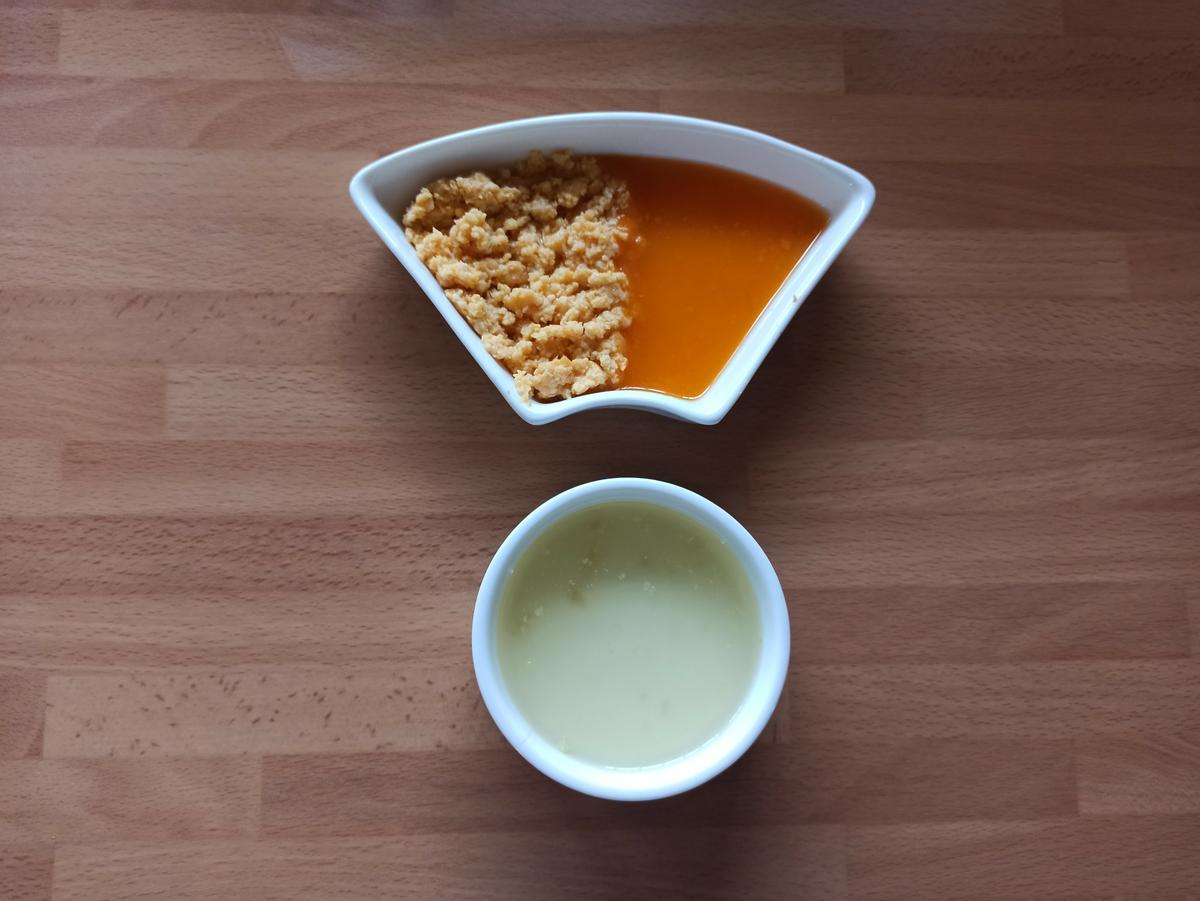 La textura del menú en puré, para que sea mejor asimilado en esos días que el intestino no funciona al 100%, además le añaden un poquito más de caldo a la mezcla, algo que da más palatabilidad al producto.