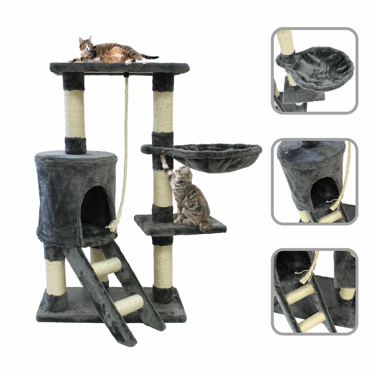 En.Casa: Árbol de cuatro alturas que mide 141cm y cuenta con una cueva y una hamaca. El precio es de 40,90 más unos gastos de envío de 5,90. Las valoraciones son de 4 estrellas.