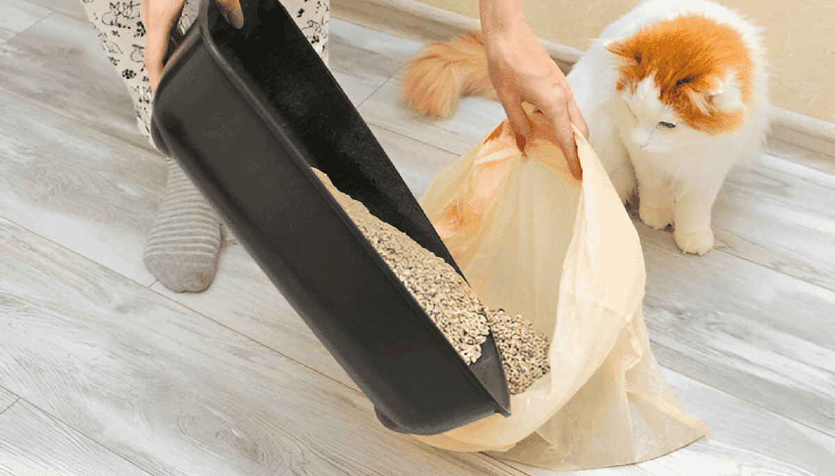 Sacar las deposiciones y la orina aglomerada cada día ayudará a mantener el arenero limpio y libre de olores desagradables.Cambio de arena completo