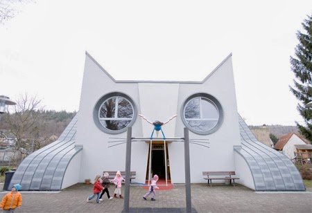 Ubicado en Karlsruhe, Alemania, el diseño del edificio Cat Shaped Kindergarten es obra de Ayla Yondel y Tomi Unger y fue construido en el 2002