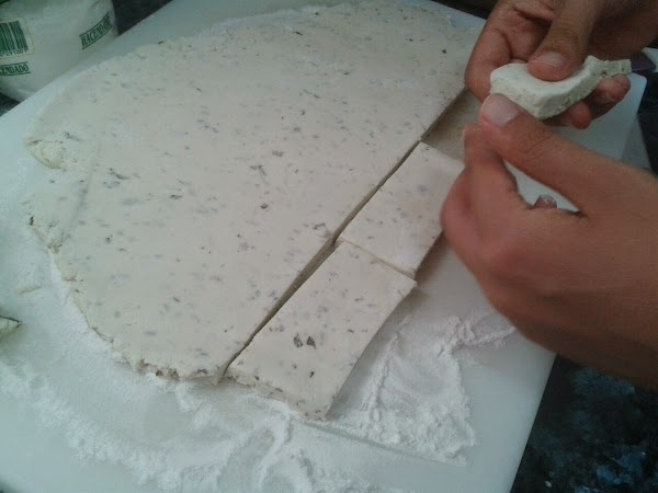 Con un cuchillo cortamos rectángulos y redondeamos las esquinas.