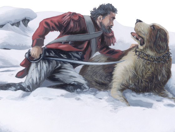 "El mejor perro, el mejor animal es Barry. Solías dejar el convento con una canasta colgada sobre tu cuello, hacia la tormenta, bajo la más traicionera nieve. Todos los días examinaba la montaña en búsqueda de desafortunados que haya quedado atrapados bajo las avalanchas. Los desenterrabas y los devolvías a la vida por tu propia cuenta, y cuando no podías, regresabas al convento pidiendo ayuda a los monjes. Resucitabas personas. Tu dulzura era muy fácil de comunicar, tanto que el niño que desenterraste no tuvo ningún miedo de dejarte traerlo al hospicio agarrado de tu espalda".