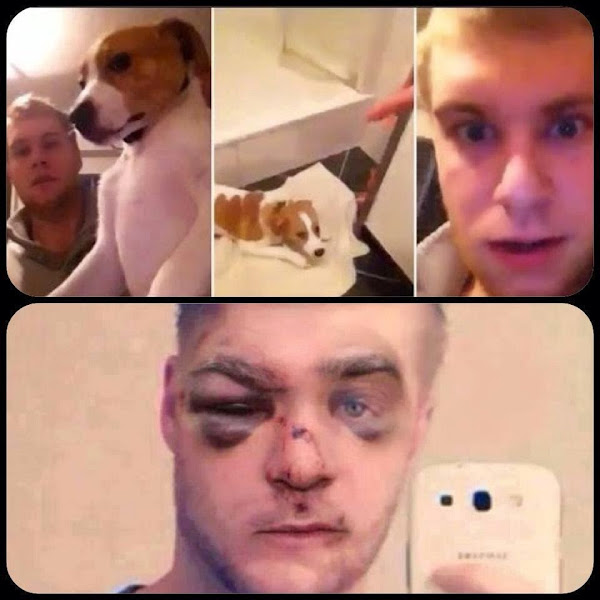 Personas indignadas averiguaron donde vivía el agresor y después de quitarle el perro, le dieron tremenda tunda. Tom-Jan Hüsch publicó las imágenes de como le dejaron el rostro.