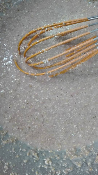 Añadimos el salvado de avena y la harina de arroz para darle la consistencia necesaria para hacer bolitas y batimos de nuevo.