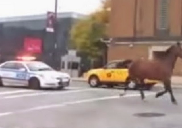 Muchos neoyorquinos fueron testigos el domingo de una escena típica de una película de vaqueros, aunque esta vez la persecución de un caballo a todo galope la realizaron dos patrullas de la Policía de Nueva York.
