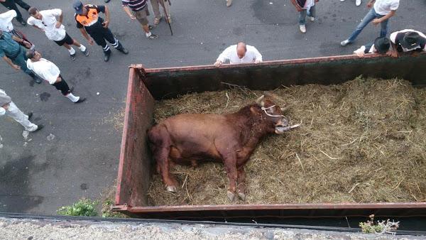 Uno de los bueyes se desplomó casi llegando al final del trayecto, en ese momento le pisaron el rabo y le pincharon en varias ocasiones para que se incorporase, pero estaba exhauto, así que fue arrastrado con un camión, le ataron los cuernos e intentaron subirlo con la grúa, pero la cuerda se partió. Las fotografías del animal ya sobre el camión impresionan, con el buey que parecía muerto. Las personas que relatan lo ocurrido no vieron asistencia veterinaria alguna. Aún así, el alcalde de Garachico, que opina que "son importantes los animalitos pero también el sector ganadero" ha declarado que según la AGATE (asociación ganadera responsable de supervisar la actividad) el animal se encuentra bien.