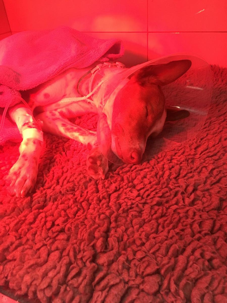 Todo cambió el día que nos recomendaron a unas chicas veterinarias que trabajaban en Sant Cugat y que a través de un cultivo le encontraron una bacteria. Comenzamos con el antibiótico con toda la esperanza de solucionarlo. Todo cambió el día 10 de agosto. Recuerdo ese día como si fuese hoy mismo. Salí del trabajo sobre las 22h y mi pareja al llamarme me dijo que Coco estaba raro, más chafado de lo normal. Al llegar, Coco no podía ni levantarse de su cama, se caía hacia los lados y no podía ni abrir los ojitos. Las llamé y su respuesta fue clara: directos al hospital. Hospital que nos cambió la vida. Neumonía de la cual no sabían si iba a salir. Uno de los días los doctores nos comentaron de hacerle un tac en la nariz para ver cómo estaba por dentro después de tantos meses con mocos y ahí a lo lejos encontramos todo, el problema de Coco y el motivo de estar como estaba: shunt portosistemático en el hígado. Sí, iban a mirarle la nariz y a lo lejos vieron que algo no estaba bien. Los análisis lo confirmamos, había que operar.