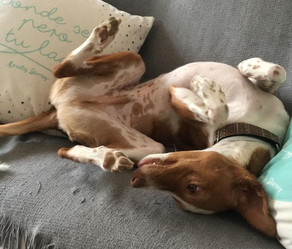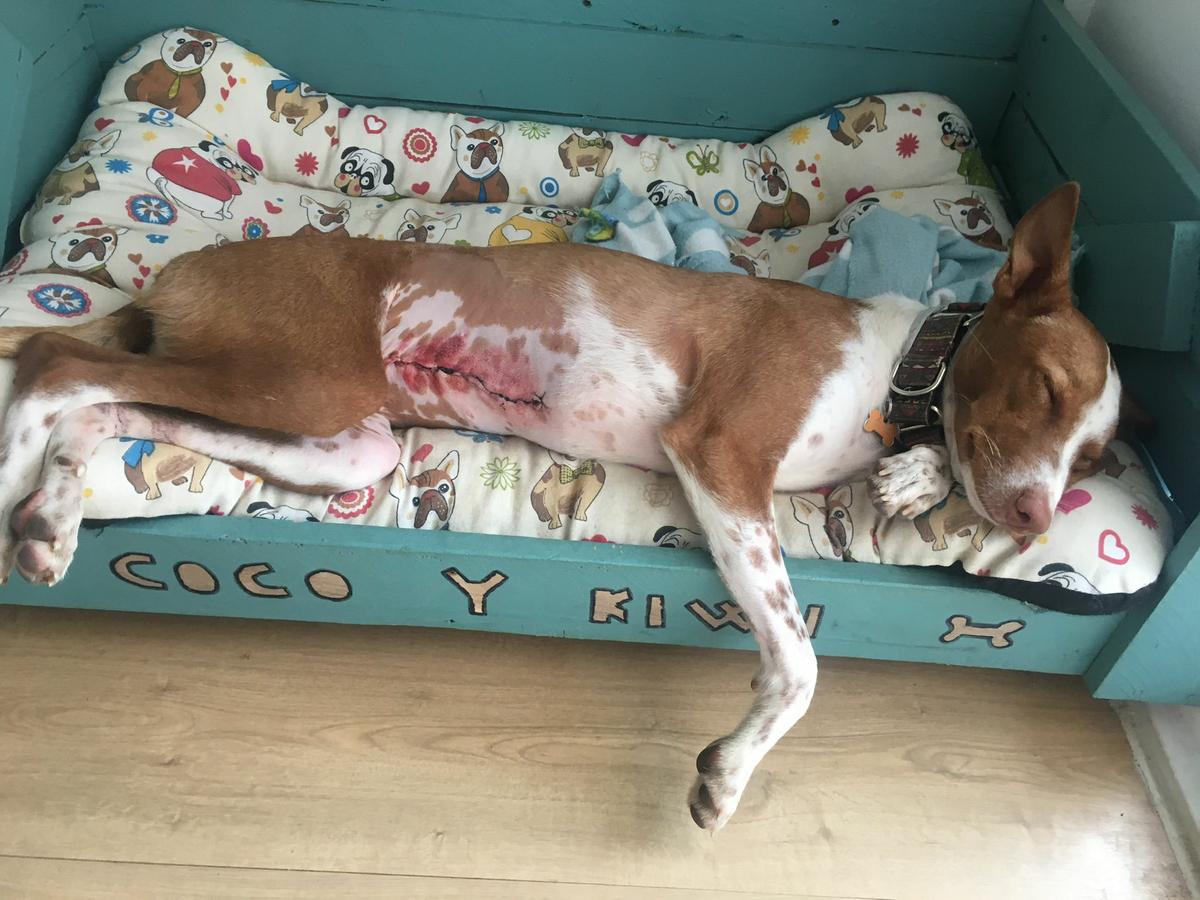 Me presento, soy Sandra, mamá de Coco y os voy a explicar su larga historia. Empecemos por el principio. En 2018, concretamente el 23 de agosto mi pareja y yo nos compramos una casa con jardín y teníamos claro que queríamos adoptar un perro. Un mes después, cotilleando Facebook encontré un anuncio de una protectora “Se busca familia para estos 4 podencos. La perra se les ha quedado embarazada y los van a abandonar” Me enamoré de ellos y al día siguiente a las 8 de la mañana estaba llamando a la chica. Me comentó que justo salían de Ciudad Real hacia Barcelona ese mismo día y que me traía a dos, que me quedase con uno e hiciese de casa de acogida del otro hasta que le encontrasen casa. Aunque ya la tenía: la nuestra. Así fue, el día 21 de septiembre llegaron a casa Coco y Kiwi, dos hermanos podencos de un mes que nos revolucionaron todo.