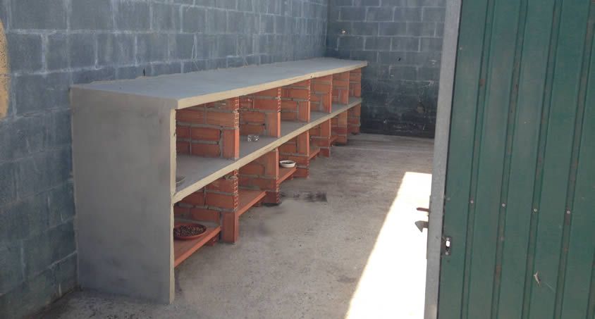Durante los meses de calor y frio, los animales necesitan refugios, que deben estar aislados del suelo (podrian ponerse unas patas). Lo mejor es que se puedan abrir por arriba para limpiarlos. Y que no sean muy llamativos, integrados en el entorno.