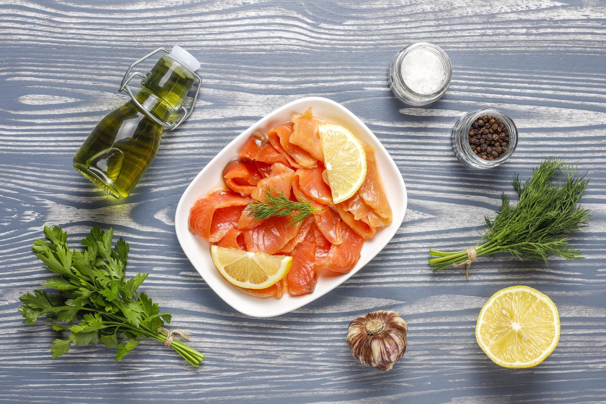 Ingredientes: filete de salmón, batata, brócoli, aceite de oliva.