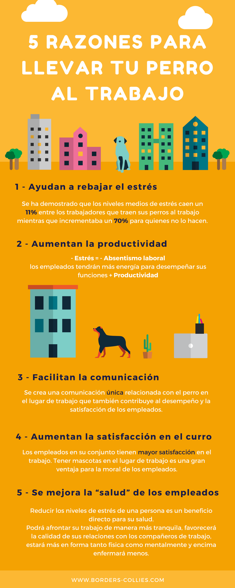 Se ha demostrado que cuando hay perros en los lugares de trabajo el estrés es menor tanto para sus dueños como para las personas que conviven con ellos en el trabajo.