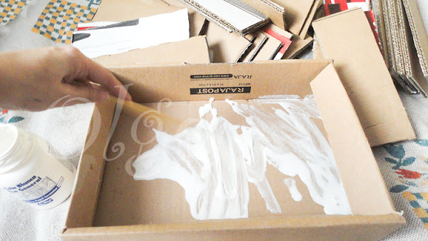 Extiendela bien con una brocha, usa bastante cantidad para cubrir toda la base de la caja