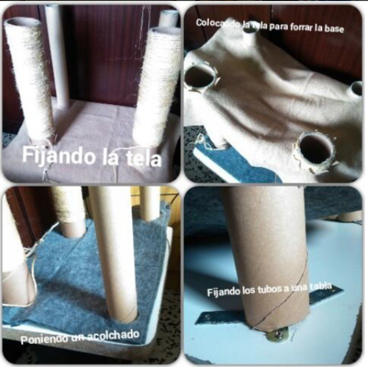 -Ponemos una plancha de cartón en la base dde la cama ( Ya que a los gatos les encanta acostarse en cartón)