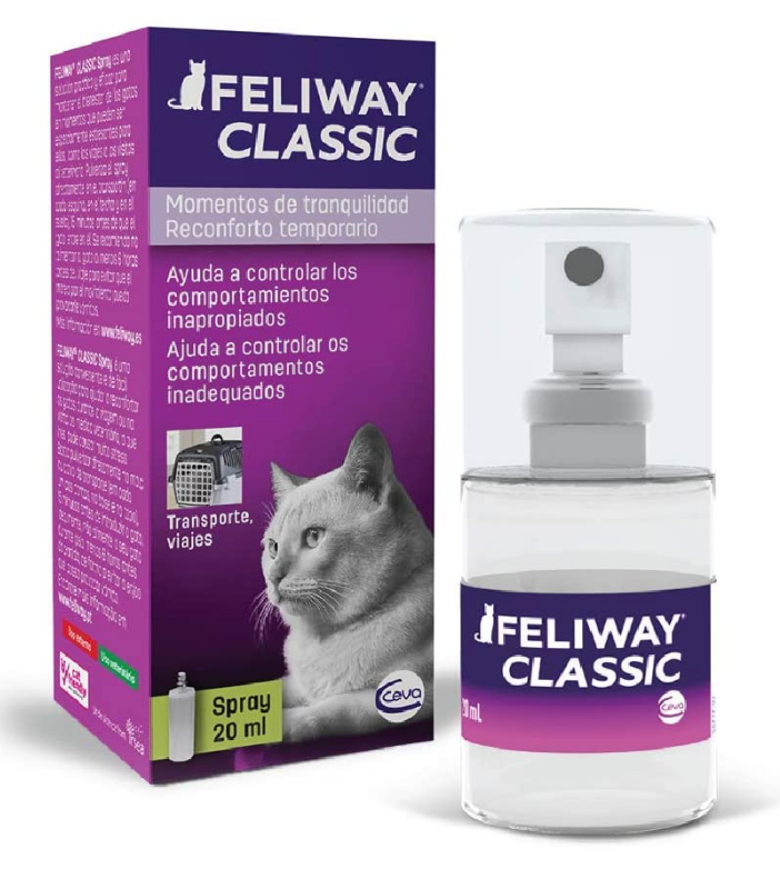 Como te decíamos, gracias al uso de Feliway Classic spray podrás gozar de un viaje más seguro y tranquilo porque contiene la feromona que llamamos el marcador de la felicidad. Una acción tan sencilla como rociar el transportín con el spray 15 minutos antes del viaje ayudará a nuestro a gato a estar más tranquilo en el coche, tren o cualquiera que sea el medio de transporte que vayamos a utilizar. En este vídeo nos lo explican con más detalle.