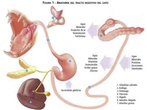 Como en todos los felinos, el tracto digestivo es pequeño pero eficiente, ya que permite que la digestión de la comida sea rápida y evita que se lleve un peso extra, otra razón más por la cual nuestro gato resulta ser muy hábil.¿Cómo está formado el aparato digestivo?