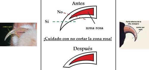 Las uñas, también pueden ser recortadas cada 15 días más o menos, un gatito que se acostumbra de pequeño será muy sencillo, Solo hay que cortar la punta, sin llegar a la zona rosa, que es donde está el riego sanguíneo.Ni falta hace recordar, que la desungulación (extirpación de las uñas) es una mutilación que está penada por ley, y en ningún caso debe ser realizada.
