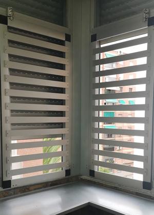 (Son mosquiteras que van al carril, donde el trabajador del aluminio ha puesto travesaños y un cerrojo , para que no las puedan correr)