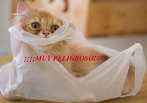 No debemos dejar bolsas a su alcance, porque pueden morderlas y comerlas, o meterse dentro y asfixiarse. Debemos mantenerles lejos de hilos, cordones etc .sin supervisión, ya que podría ser peligroso. Ellos pueden llegar a tragar cualquier cosa con el fatal desenlace de una obstrucción intestinal, que puede terminar muy mal, si no estamos atentos.