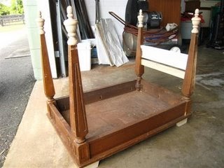 Añadimos unos apoyos en el tablero para que no apoye en el suelo, unos travesaños y unas terminaciones decorativas, por último pintamos.
