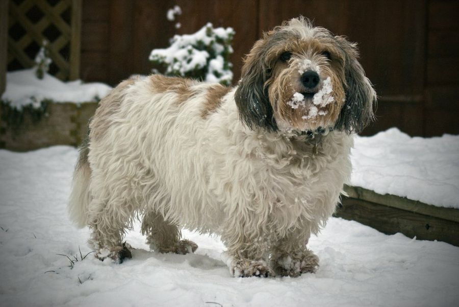 Sus orejas son largas y peludas, los ojos grandes y ovalados, y su cola es de tamaño mediano. Es un perro muy fuerte y con grandes características físicas por su flexibilidad. Es muy buen saltador y excavador.