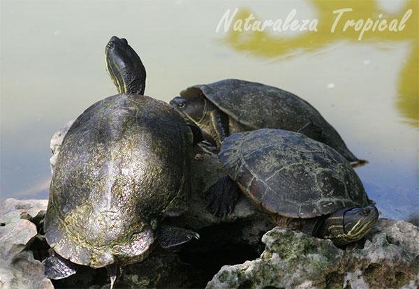 Son tortugas muy conocidas y consideradas incluso especies invasoras. Al principio son carnívoras y con el tiempo van haciéndose omnívoras. Es necesario tenerlas cerca del sol y mantener el agua de estas tortugas entre los 24 y los 30 ºC y darles el calcio que necesita su caparazón.