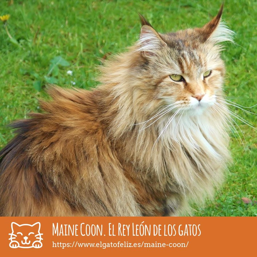 Como os hemos comentado antes al Maine Coon se le podría conocer como el Rey León en el mundo de los gatos. Su pelaje es impresionante, largo, denso y sedoso. Tiene un manto inferior muy denso y abundante y el externo es impermeable y muy brillante.