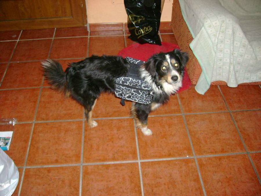 Aquí os muestro un alforja para perros. Sí, como oís. Con esta sencilla prenda, vuestra mascota puede portar utensilios mientras le paseáis. Así que si queréis que lleve un peine, una pelota con la que jugar o cualquier otra cosa no tenéis más que meterlo en las bolsas. Además, con el tiempo tan frío que hace en invierno, el perro puede ir bien abrigado.