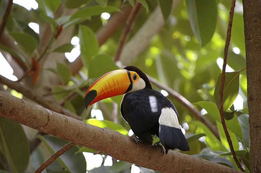 El pico de los tucanes no sólo llama la atención por su forma, sino también por su colorido, muy vistoso y, en ocasiones, variado y en forma de pequeñas motas de diversas tonalidades. Este apéndice es una verdadera herramienta para estos pájaros, puesto que les permite desde alimentarse hasta defenderse de posibles depredadores.