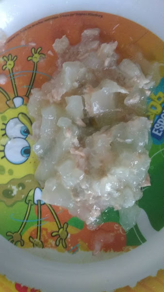 Pasado ese tiempo se lo pongo en el comedero y dejo atemperar para que lo coma del tiempo. Es una receta muy completa y que gusta mucho.