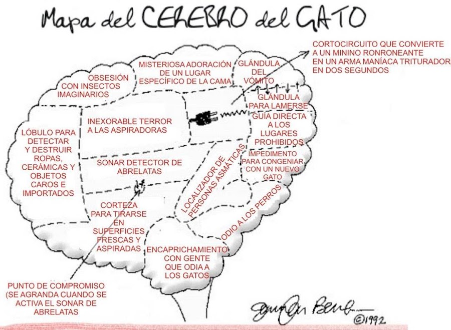 La imagen, en clave de humor nos "descifra" cómo piensan nuestros gatos de casa. XD