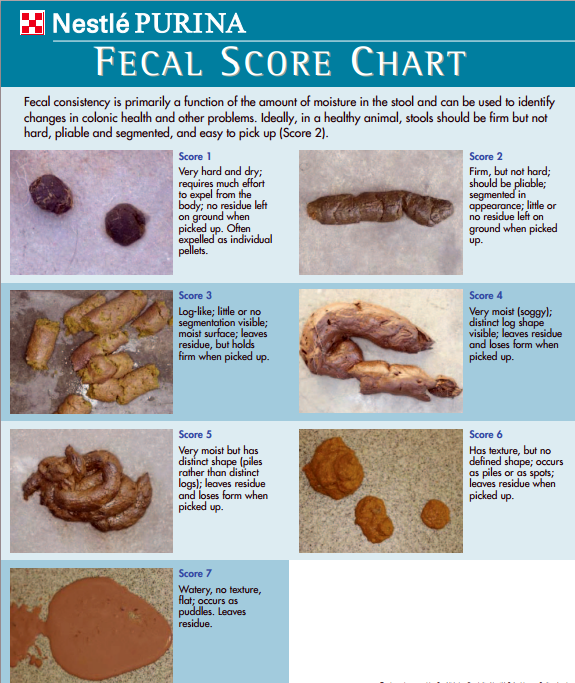- Consistencia de las heces y frecuencia (si puedes recoger una muestra, mejor, o incluso tres muestras de tres dias diferentes o una foto si no puedes llevar nada más)