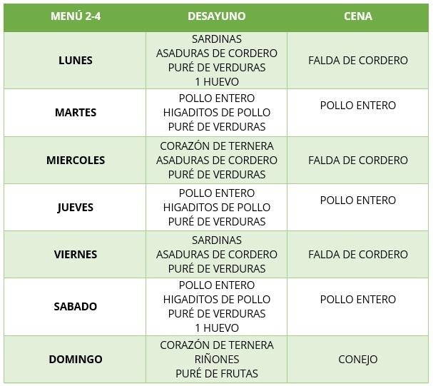 El menú 2-4 para la segunda y cuarta semana del mes.