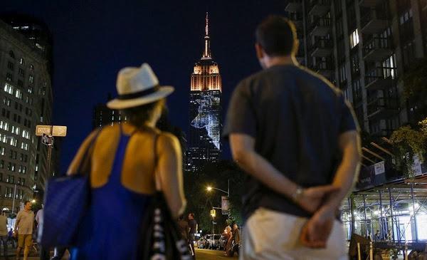 Imagen del Empire State con un águila proyectada en su fachada.