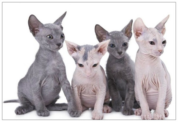 En 1966, una gata doméstica dio a luz una camada de gatitos sin pelo, en Toronto, Canadá. Se descubrió que era una mutación y así es como surgió el gato Esfinge. El Esfinge parece a primera vista ser un gato pelón, aunque no es realmente un gato sin pelo. La piel tiene la textura de un durazno. Puede estar cubierto con una pelusa muy fina que es casi imperceptible, tanto al ojo como al tacto. En las orejas, boca, cola, pies y escroto, se permite un fino pelo corto y suave. Sus bigotes y cejas pueden estar incompletos o ausentes del todo. La cola puede terminar con un mechón de pelo, como la de los leones.