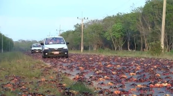 Miles de cangrejos mueren aplastados al paso de los vehículos.