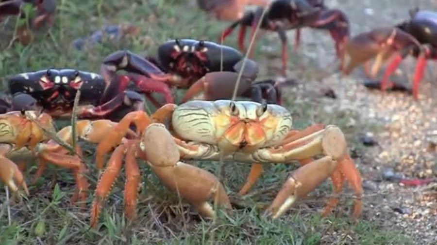 Durante el difícil viaje que emprenden para mantener su especie los cangrejos rojos encuentran una enorme cantidad de obstáculos letales que el hombre ha interpuesto en su camino, entre ellos pueblos y carreteras traficadas, de hecho muchos mueren aplastados por autos y pasantes.