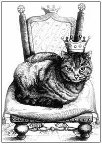 El caso es que el monarca gatuno finalmente murió y, cuando sus felinos súbditos buscaron el testamento, no encontraron en parte alguna ni testamento, ni cascabel, ni, si es el caso de según quién cuente la historia, coca alguna... Y, desde aquel aciago día, el pueblo de los gatos no ha cesado en su empeño de hallar el desaparecido testamento, con la intención de poder nombrar al sucesor del primer gato, el Rey de los Gatos.