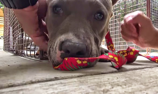 La versión principal de este hecho refiere que esta Pitbull fue hallada tras la llamada de una persona anónima diciendo que había un animal aparentemente violento que andaba dando vueltas. Tras recibir esta llamada “Hope For Paws” recurrió al rescate del animal, llevándose una gran sorpresa y no precisamente por la fiereza del animal.