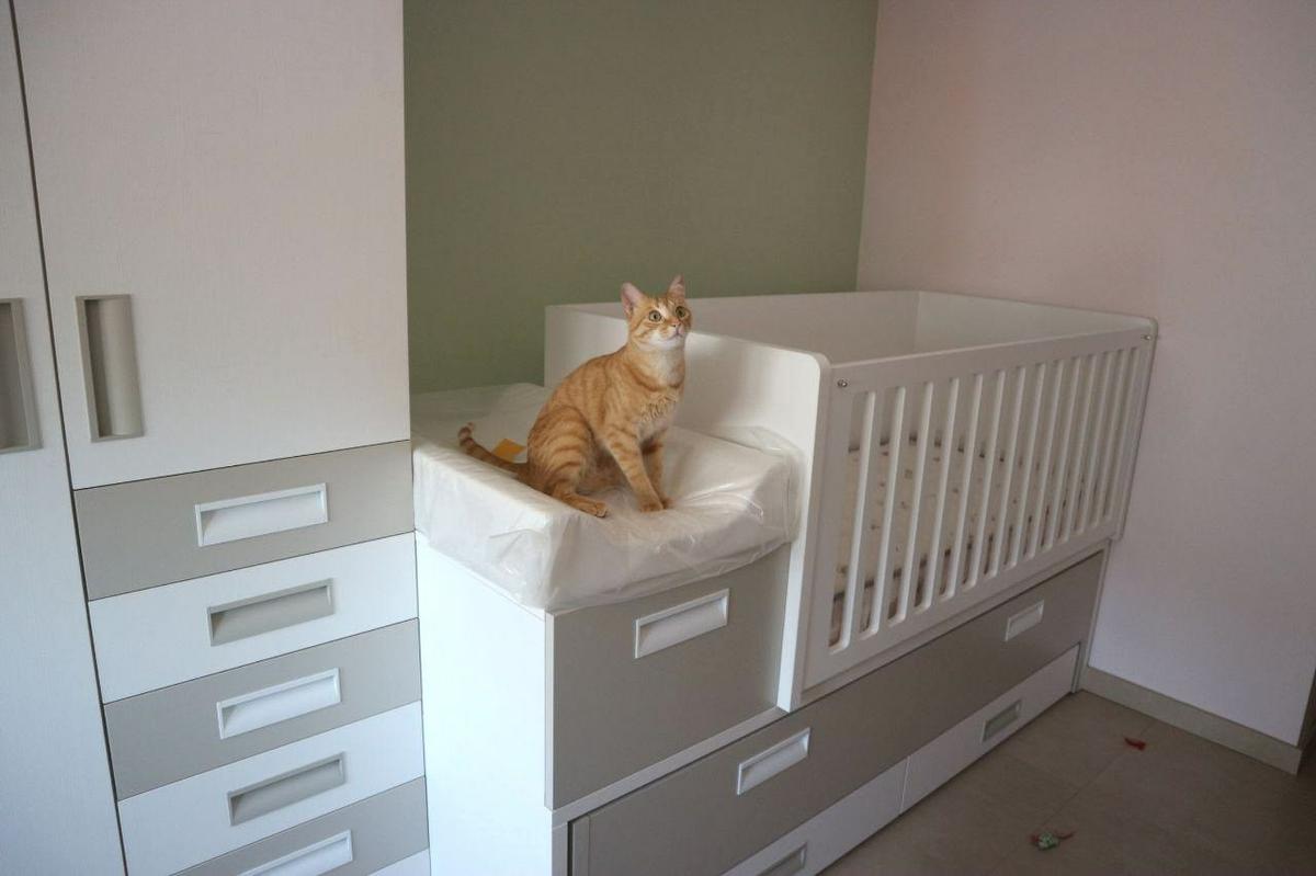 También hemos intentado que los cambios en casa sean progresivos: Primero retiramos el dormitorio antiguo, esperamos unos días para pintar y unos días más tarde montaron la nueva habitación. Durante todos estos cambios les dejamos que investigasen en todo momento y hemos mantenido su cama de radiador, sus mantas y su rascador en la habitación.