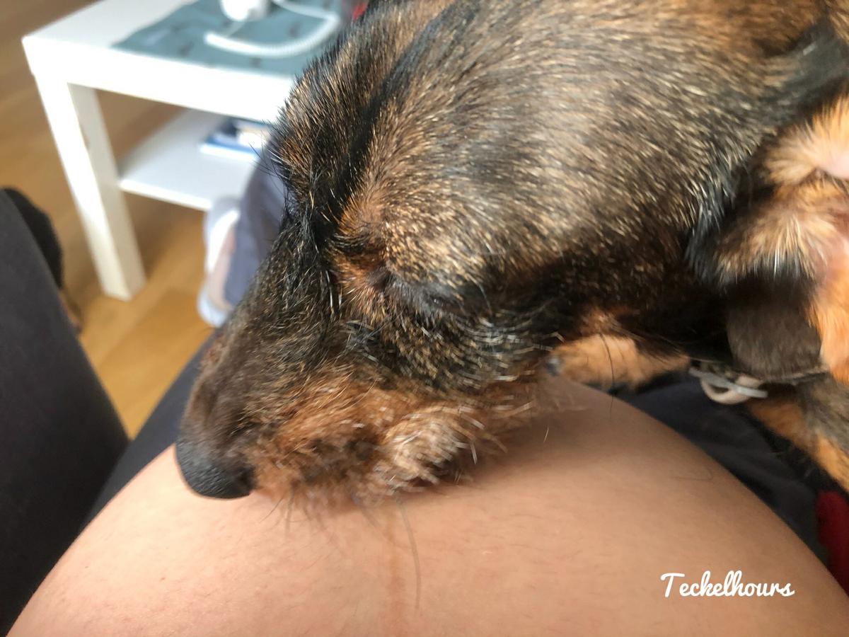 En los momentos de descanso que tenía por la noche con las piernas en alto, a mi perra le encantaba chuparme la tripa. Las primeras veces pensaba que era por la crema que llevaba, pero después entendí que de alguna forma, intentaba comunicarse con el bebé tranquilizándole y relajándole. Incluso en alguna ocasión el bebé contestó con patadas después de esos lamidos.