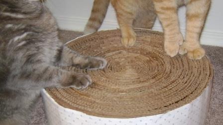 Con planchas de cartón o cajas recortadas, podemos enroscar el carton y crear rascadores baratos y eficaces
