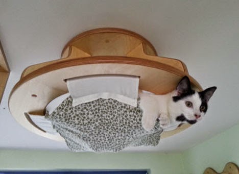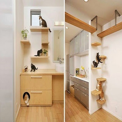 Hay formas muy decorativas e ingeniosas de proporcionar ejercicio a los gatos: una camita encima de un armario o de una estanteria con estantes de acceso, aunque tambien podemos dejar volar la imaginación