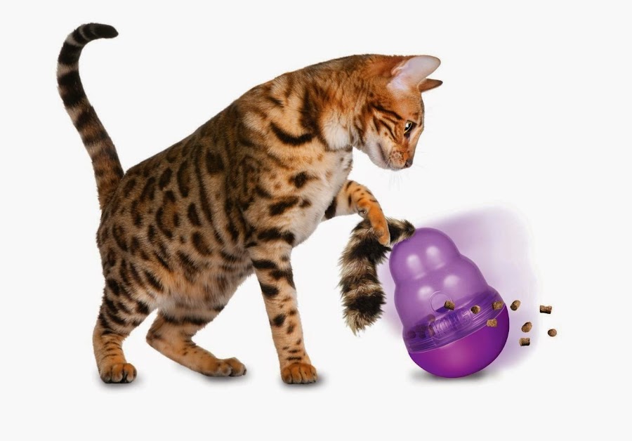La rutina típica de un gato en libertad consiste en dormir, salir de caza, comer y volver a dormir (con periodos de acicalamiento). Por tanto, para conseguir su alimento el gato debe invertir tiempo y esfuerzo, de hecho, muchas veces ni siquiera consigue alimento despues de un esfuerzo (lo cual ocurriría mientras jugamos con él). Pero cuando damos de comer a nuestro gato, podemos hacer que este momento sea una forma más de estimulación, y no solo "zampar sin parar", que no es, ni mucho menos, algo normal para ningun ser vivo.