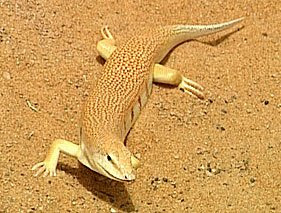 Los machos de los escincos (Scincus Scincus), suelen alcanzar los 20 cm de largo, y se encuentran en desiertos de África.