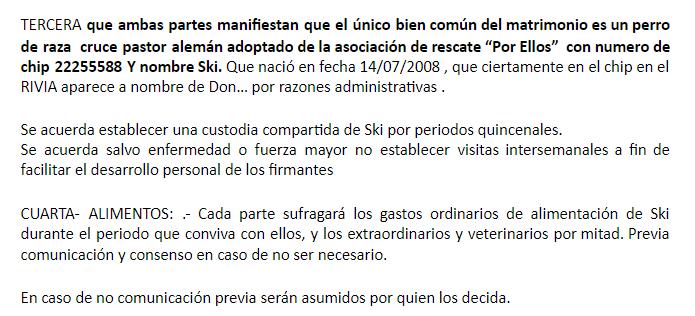 Ejemplo cláusula divorcio mutuo acuerdo con mascota