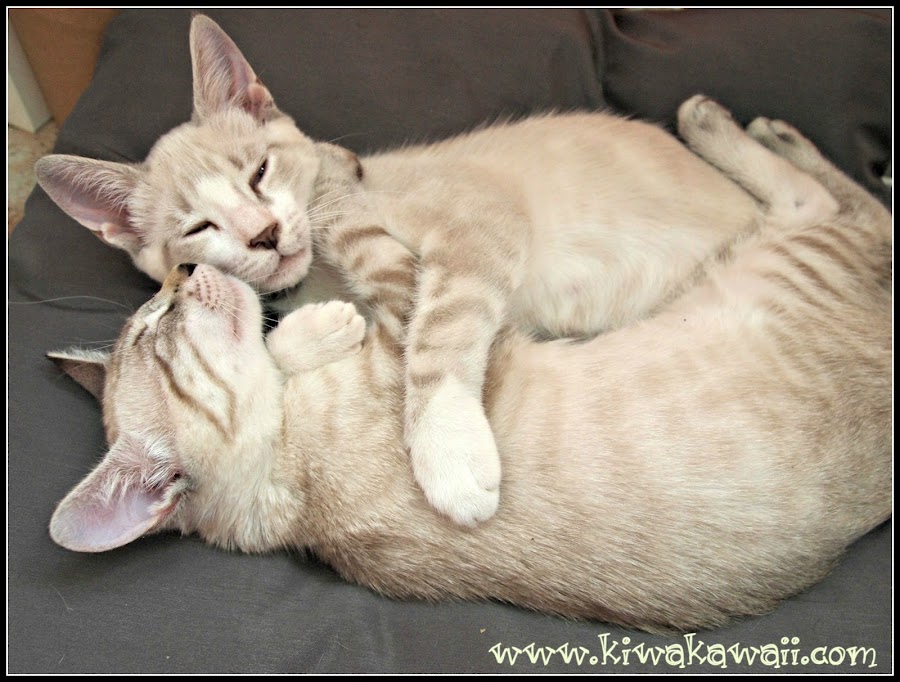 Tras muchos biberones (diurnos y nocturnos), muchos cuidados y tras algún tropezón por el camino, esas dos bolitas de pelo se han convertido en dos gatitos preciosos: Suguru y Deneb.
